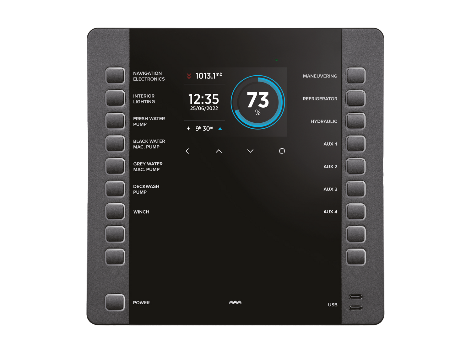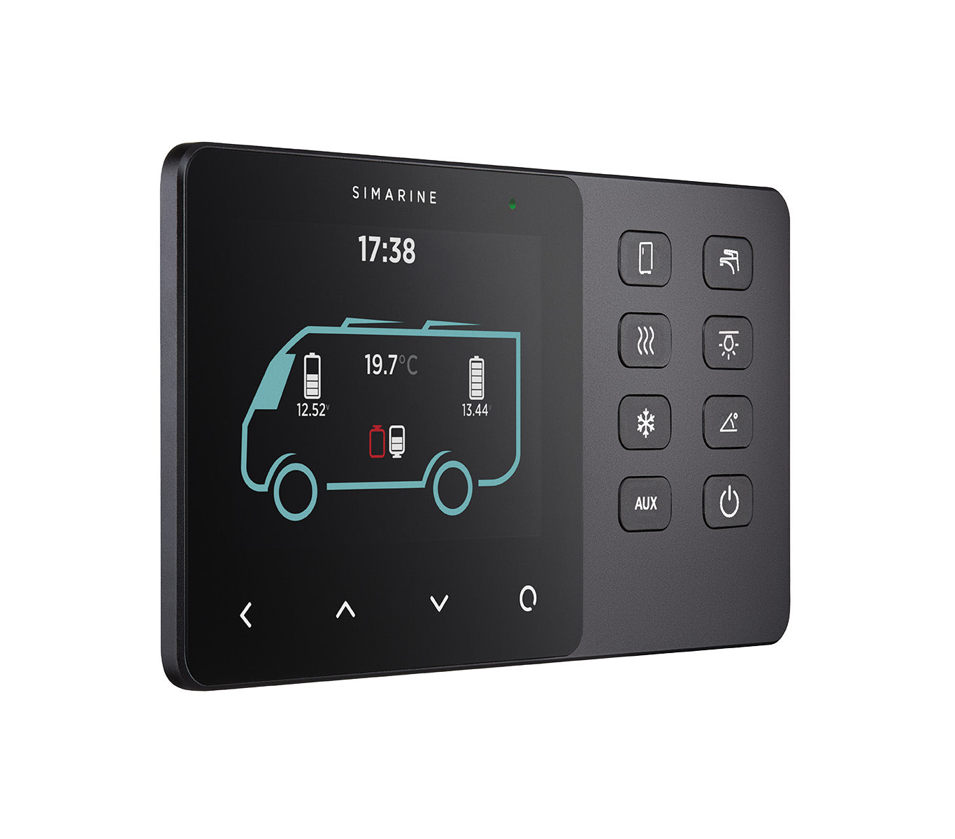 Digitales Schaltsystem für Wohnmobile und Campers mit einem Tastenbedienfeld und einer kompletten Überwachung von Netzgeräten, Tankfüllständen und vieles mehr.