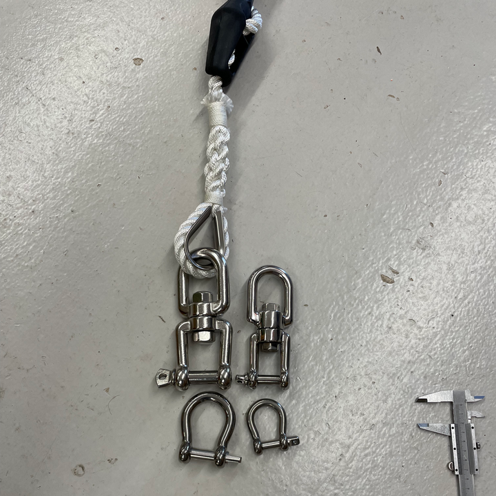 Festmacherleine mit Rückdämpfer mit Kausch gespleisst und einem Wirbelschäkel.