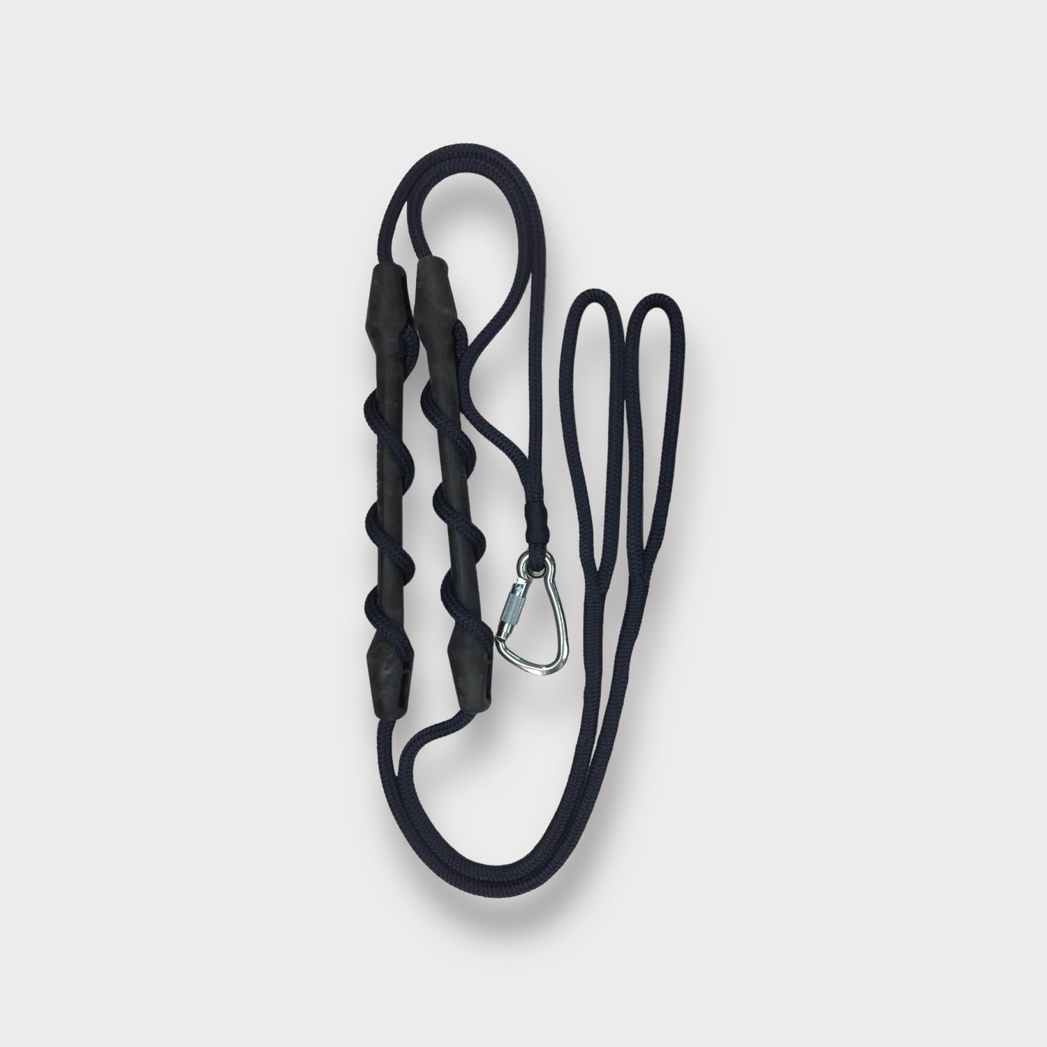 Zweifache Festmacherleine mit Haken, Rückdämpfer und Augspleiss an beiden Enden.